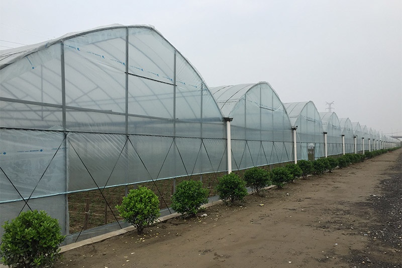 The product consists of three parts: foundation, frame column and top arch pipe. The point-type independent foundation makes the base of the greenhouse strong; the column adopts the hot-dip galvanized square tube to greatly enhance the wind and snow resistance; the top is arranged by the hot dip galvanized steel pipe into a smooth arc shape, which is firm and beautiful. At the same time, the gutter adopts 2mm thick hot-dip galvanized plate for cold forming, large capacity, and timely drainage; the diaphragm film ventilation system is installed at the top gutter and the greenhouse, which is the air flow inside the greenhouse. This product can be equipped with relevant facilities according to the needs, in order to achieve better results, such as external shading system, internal shading insulation system, cooling system, heating system, spray drip irrigation system.