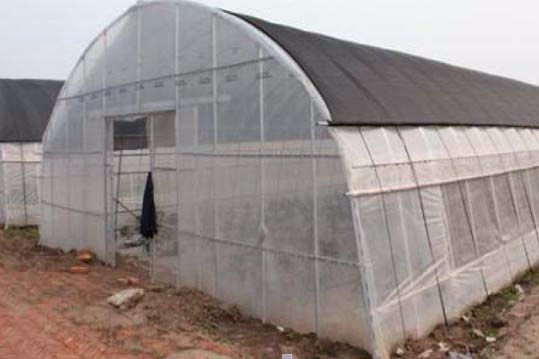 本大棚在薄膜的外面覆蓋了一層遮陰網,遮陰網遮光率高,兩側可用卷膜桿卷起,使用非常方便
