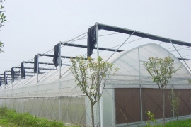 該產品由基礎、框架立柱,頂部拱管三大部分組成。點式獨立基礎,使大棚根基牢固;立柱采用熱鍍鋅方管,大大增強抗風抗雪強度;頂部由熱浸鍍鋅鋼管排列成平滑圓弧形,牢固兼美觀。同時天溝采用2mm厚熱鍍鋅板冷彎成型,容量大,排水及時;頂部天溝處和大棚四周均設置搖膜通風系統,是大棚內部氣流通暢。此產品可根據需要實現相關配套設施,以便達到更理想的效果,如外遮陽系統、內遮陽保溫系統、降溫系統、加溫系統、噴滴灌系統等。