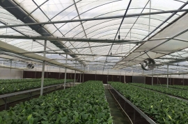該產品由基礎、框架立柱,頂部拱管三大部分組成。點式獨立基礎,使大棚根基牢固;立柱采用熱鍍鋅方管,大大增強抗風抗雪強度;頂部由熱浸鍍鋅鋼管排列成平滑圓弧形,牢固兼美觀。同時天溝采用2mm厚熱鍍鋅板冷彎成型,容量大,排水及時;頂部天溝處和大棚四周均設置搖膜通風系統,是大棚內部氣流通暢。此產品可根據需要實現相關配套設施,以便達到更理想的效果,如外遮陽系統、內遮陽保溫系統、降溫系統、加溫系統、噴滴灌系統等。