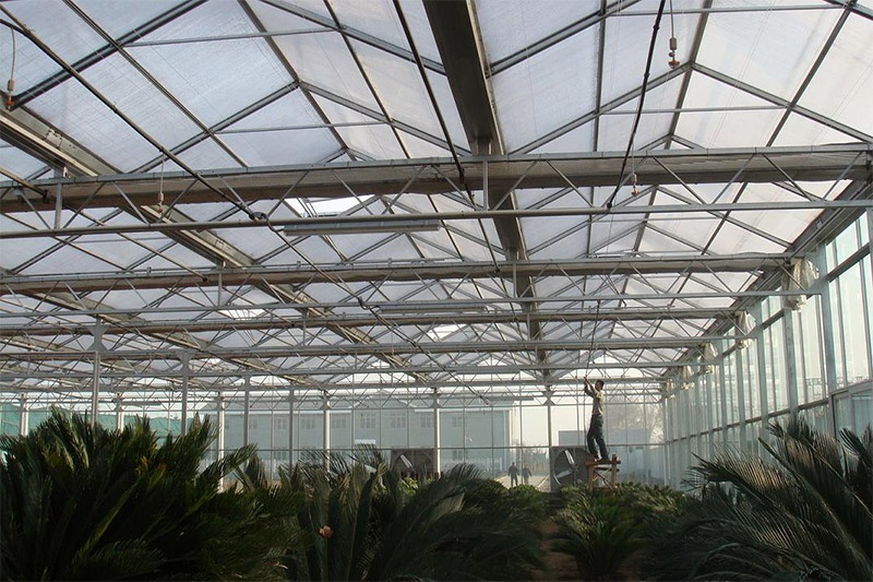 文洛式玻璃溫室為一跨三尖頂、雙坡面小屋頂桁架結構、多雨槽、具有美觀、吊掛能力強、透光性好、空間大、機械性能強等優點。