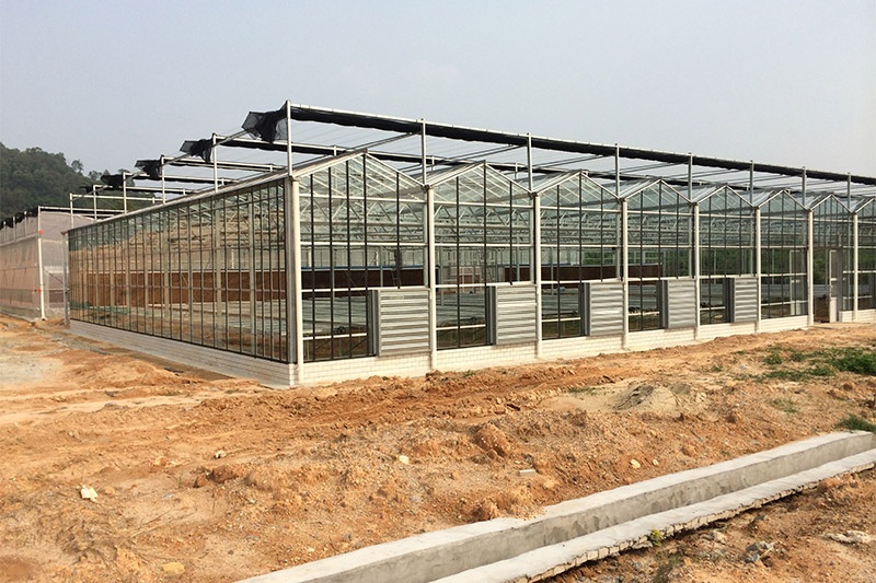 文洛式玻璃溫室為一跨三尖頂、雙坡面小屋頂桁架結構、多雨槽、具有美觀、吊掛能力強、透光性好、空間大、機械性能強等優點。